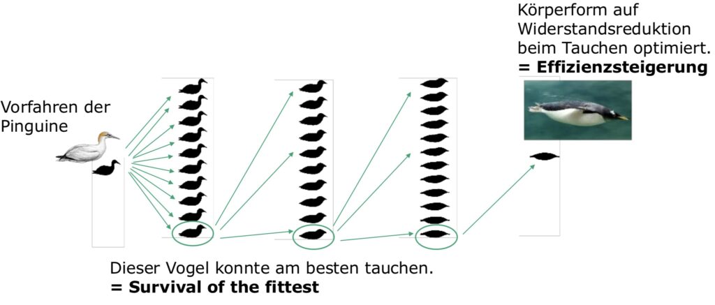 Die Körperform tauchender Vögel wurde im Verlauf der Evolution auf Widerstandsreduktion optimiert und führt zu einer gesteigerten Effizienz, ein Prinzip, das bionisch auf technische Strömungssysteme übertragen werden kann.